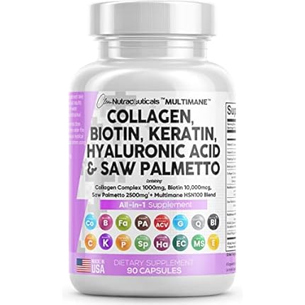 Collagen Pills 1000mg Biotin 10000mcg Keratin Saw Palmetto 2500mg Hyaluronic Acid – Hair Skin and Nails Vitamins and DHT…