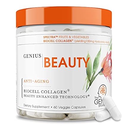 Genius Beauty, Hair Skin & Nails Vitamins, 60 Capsules – Anti-Aging Antioxidant Supplement, Hydrolyzed Collagen Pills…