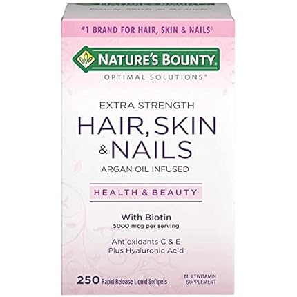 Nature’s Bounty Hair, Skin & Nails Rapid Release Softgels, Argan-Infused Vitamin Supplement with Biotin and Hyaluronic…