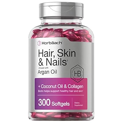 Hair Skin and Nails Vitamins | 300 Softgels | with Biotin and Collagen | Infused with Argan Oil and Coconut Oil | Non…