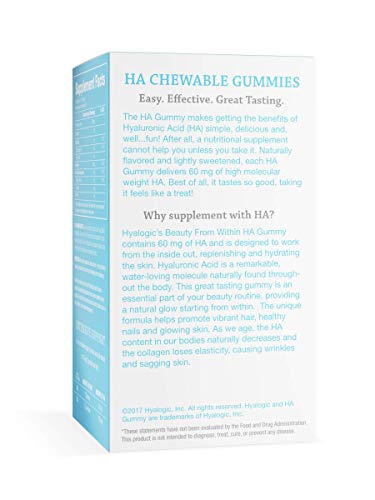 Hyalogic Chewy Hyaluronic Acid Gummies Beauty from Within Sweet Berry Flavor HA Gummies 60mg (60 Count) – Beauty HA…