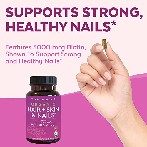 Organic Hair Skin and Nails Vitamins for Women– Biotin 5000 mcg Supplement to Support Normal Hair Growth and Glowing…