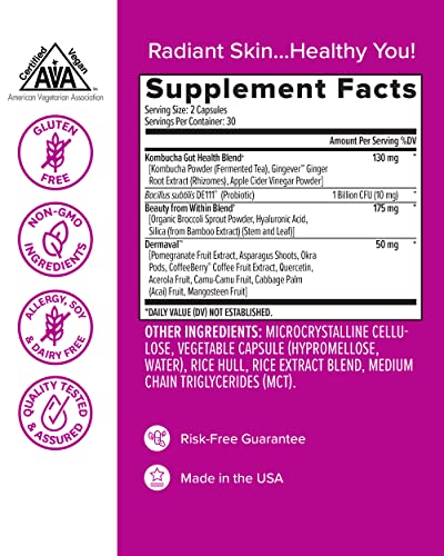 30 Day Supply: Includes 1 (60 Count) Zenwise Probiotic + Beauty with Kombucha. Non-GMO, AVA-Certified Vegan. We suggest taking two capsules daily.
