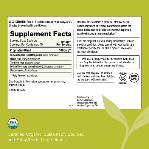 Banyan Botanicals Blood Cleanse Tablets – Organic Supplement with Manjistha & Turmeric – Blood Cleansing Herbs for Detox…