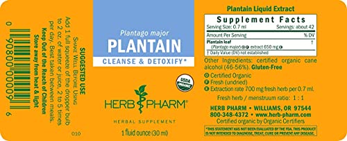Herb Pharm Certified Organic Plantain Liquid Extract for Cleansing and Detoxification – 1 Ounce (DPLAN01)