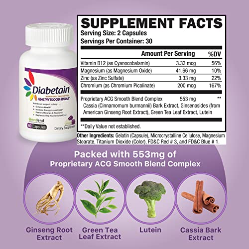 Diabetain Prediabetes, Type 1 and 2 Diabetes Supplements Capsule – Premium Blood Sugar Control Optimizer Stabilizer…