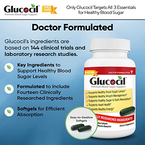 SUPPORTS THE 3 ESSENTIALS FOR HEALTHY BLOOD SUGAR: Sugar absorption, sugar production, and sugar usage. Only Glucocil targets all 3 essentials for healthy blood sugar.