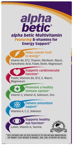 Alpha Betic Multivitamin is balanced to meet the unique nutritional needs of people with diabetes or pre-diabetes. This daily multivitamin supports immune health, cardiovascular function, eye function, and provides antioxidant support, while B-vitamins help convert food into energy.
