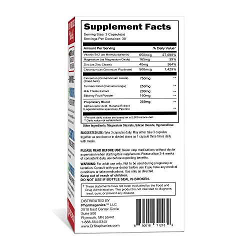 Pharmaganics Dr. Stephanie’s Blood Sugar 24 Hour Extra Strength – Once Daily Supplement