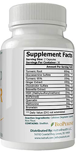 Each Sharp Ear Complete Tinnitus pill has Turmeric Root, Glucoasamine Sulfate, Turmeric 95%, Ginger Extract, Chondroitin Sulfate, Boswellia Extract, MSM (Methylsulfonylmethane), BioPerine, Quercetin, Methionine, Bromelain