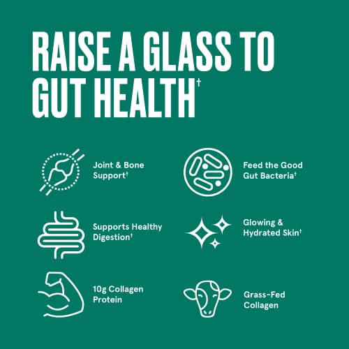 Grass-fed collagen peptides support healthy joints and bones. Collagen also helps make up the structural framework of your GI tract and provides building blocks for a healthy gut