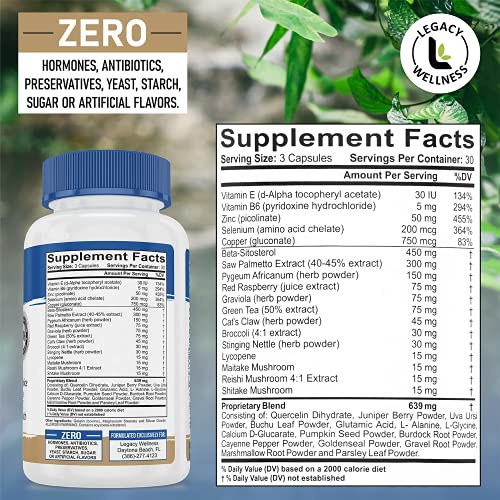 ALL PROSTATE SUPPLEMENTS ARE NOT THE SAME – EXPERIENCE THE BEST ADVANCED MENS PROSTATE HEALTH SUPPORT PILL & SEE RESULTS FOR YOURSELF – Legacy PRO is focused on men’s health with a fast-acting formula containing a unique blend of 30 carefully selected vitamins, amino acids, berries, herbs & extracts including Beta-Sitosterol, Saw Palmetto, Pygeum, Lycopene, Zinc, Selenium, Reishi Mushroom & Stinging Nettle to promote a healthy prostate size & urinary function in safe, easy to swallow pills.
