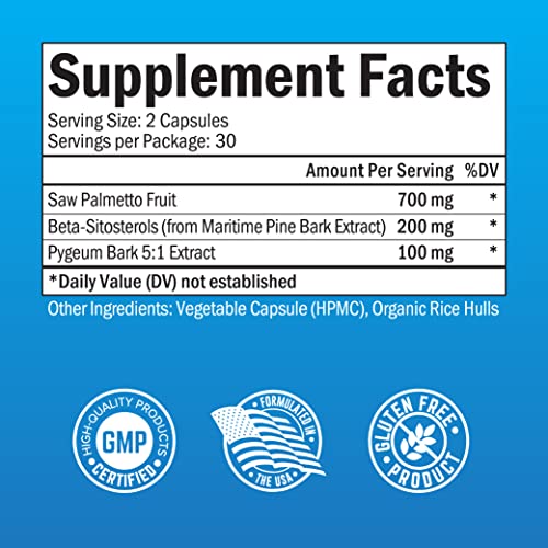 Saw Palmetto for Men with Pygeum Bark Extract and Beta-Sitosterol – Supports Prostate Health and Healthy Prostate…
