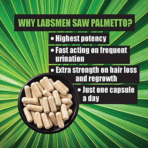 POWERFUL HAIR SUPPLEMENT FOR MEN: Our DHT Saw Palmetto complex blended with hair vitamins for men include Horsetail Whole Herb, Nettle Root, Fo-Ti Root, Pygeum Bark, and Green Tea Leaf Extract help regenerate failing hair follicles while regrowing. Only natural Saw Palmetto whole herb, best prostate supplement for men, Saw Palmetto con licopeno, best prostate pill with vitamin with Saw Palmetto berries extract, DHT Saw Palmetto and hair loss, zinc Saw Palmetto capsule for prostate health formula