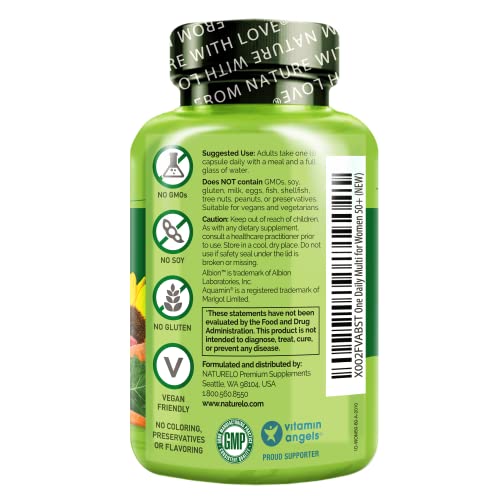 NATURELO One Daily Multivitamin for Women 50+ (Iron Free) – Support for Women Over 50 – Whole Food Supplement – Non-GMO…