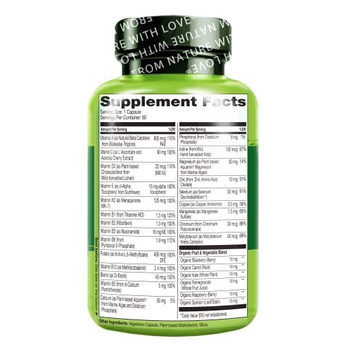 All-in-One: Packed with 23 essential vitamins and minerals to support women’s health, plus organic fruits and vegetables for whole food nutrition and antioxidant support, all in just one daily multivitamin for women.
