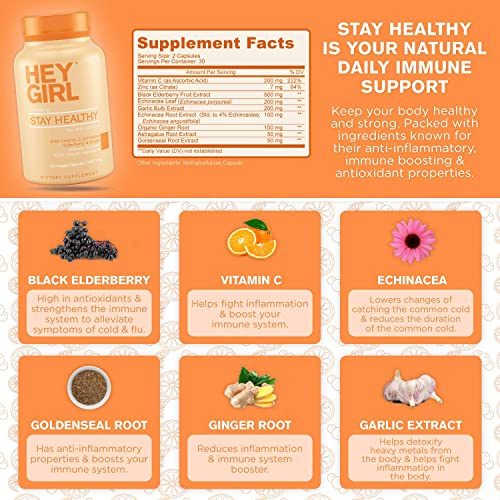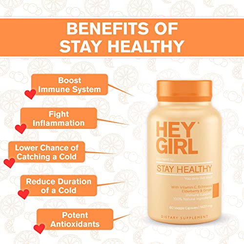 HEY GIRL NUTRITION Stay Healthy Vitamins for Women – Immune Support w/Black Elderberry, Vitamin C, and Echinacea…