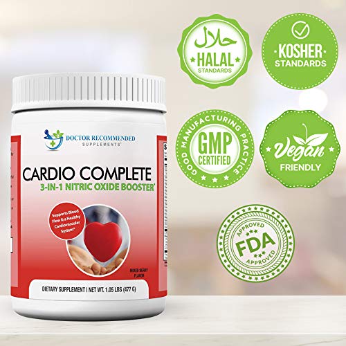 Made In USA: All of our products including our Cardio Complete Nitric Oxide Booster is made with All-Natural Flavors and Colors in a registered laboratory that meets cGMP standards. This product is NON-GMO, Free of Soy, Gluten, Milk, Egg, Wheat, Peanuts, Sweeteners, Shellfish. Delicious Berry Flavor that Tastes Great