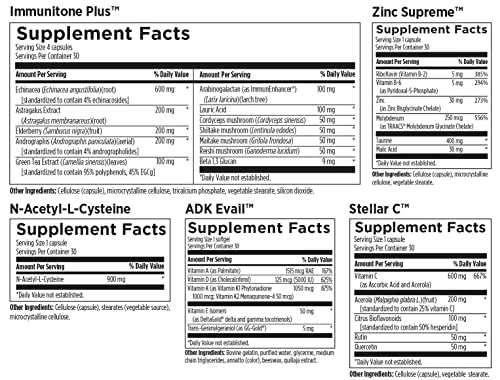 Immune-Supportive Nutrients – Includes a Vitamin D Complex with vitamins K and E, Stellar C with citrus bioflavonoids and acerola, Zinc Supreme with taurine and B6, and N-Acetyl-Cysteine.