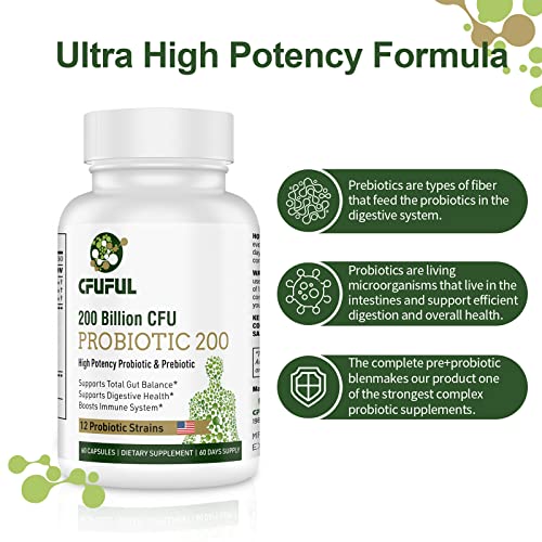 Cfuful Probiotics for Women and Men 200 Billion CFU 12 Strains Probiotic Supports Digestive Immune Gut Health Organic…
