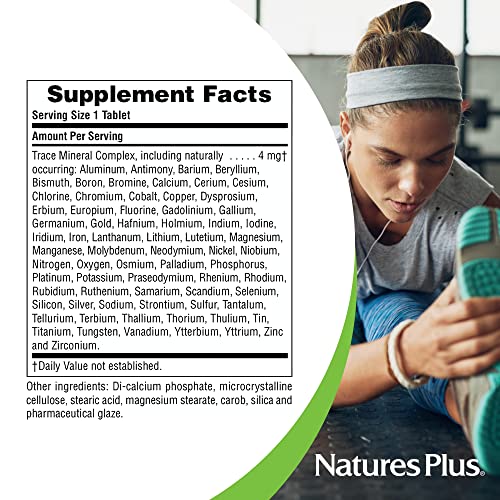Dietary SupplementVegetarianHypo-AllergenicGluten FreeQuality Natural SupplementsNutritional Support for Overall Well-Being.The need for trace minerals in human nutrition is becoming more and more evident. Nature’s Plus has designed a formula containing 72 trace minerals, derived from ancient seabed deposits. All minerals in Trace-Mins are naturally chelated and in the exact proportions that exist in ancient seawater deposits. Nature’s Plus is committed to offering the best supplements available anywhere.