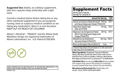 Two of the best known minerals, calcium and magnesium, with two important trace minerals, iodine and molybdenum, to support total body health.