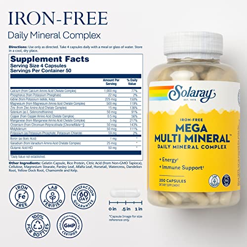 Solaray Iron-Free Mega Multi Mineral, Daily Mineral Complex with Calcium, Magnesium, Zinc, and More in Absorbable…