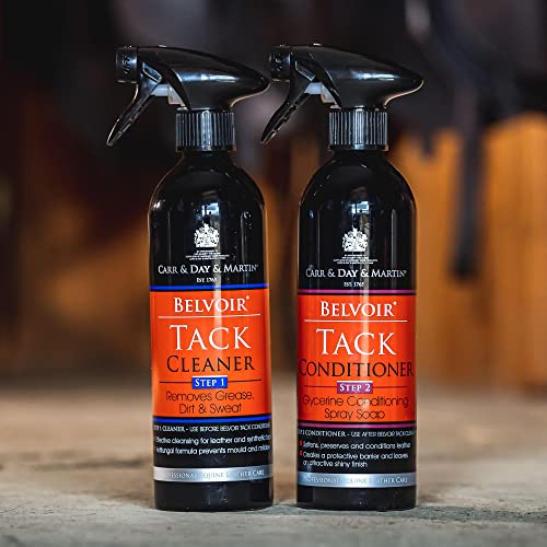 BelvoirTack CleanerpH Neutral FormulaAnti- Flormula500 ml Bottle14978 Belvoir Tack Cleaner Spray effectively cleans leather, removing dirt, grease and sweat with ease. The new “Step 1” in tack care leaves a perfect surface for the immediate application of a conditioning soap or oil. Contains a blend of cleaning agents to remove even ingrained grease The pH neutral formula will not rot stitching or over dry the leatherCan also be used on synthetic leather (test on a hidden area before use)Instructions for Use:Application:Spray directly onto leather and wipe clean. For ingrained grease, leave in contact for 5 minutes. Can also be used on synthetic leather. Test on a hidden area before use. Results are immediate. 600 ml bottle will last up to 2 months, dependent on use.